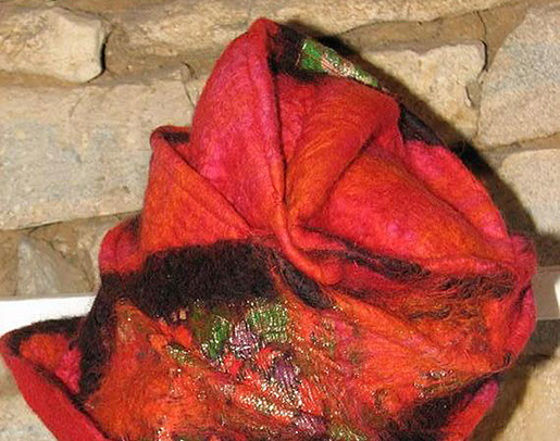 Créations originales réalisées à la main. Chaque pièce est unique et créée selon 2 techniques ancestrales, l'une sur un métier à tisser à bras pour le tissage, l'autre à la main pour le feutrage.