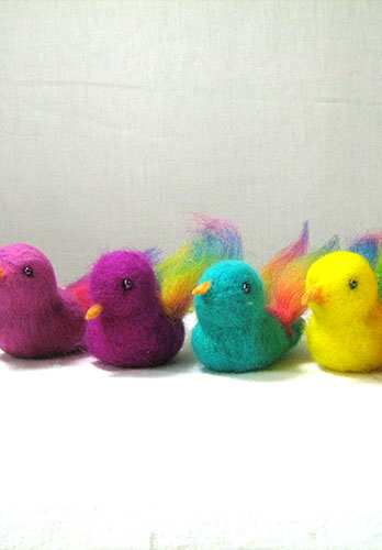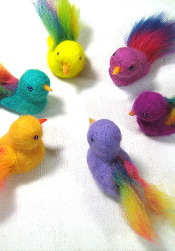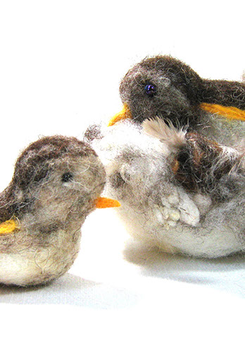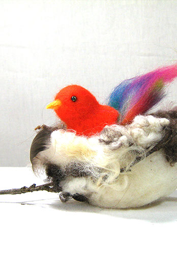 Ceci est une autre technique de feutrage dite « à sec ». Je pique la toison de laine avec une aiguille spéciale munie de petits harpons afin de sculpter la laine (attention les doigts !).