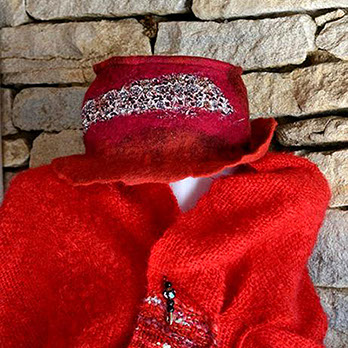 Créations originales réalisées à la main. Chaque pièce est unique et créée selon 2 techniques ancestrales, l'une sur un métier à tisser à bras pour le tissage, l'autre à la main pour le feutrage.